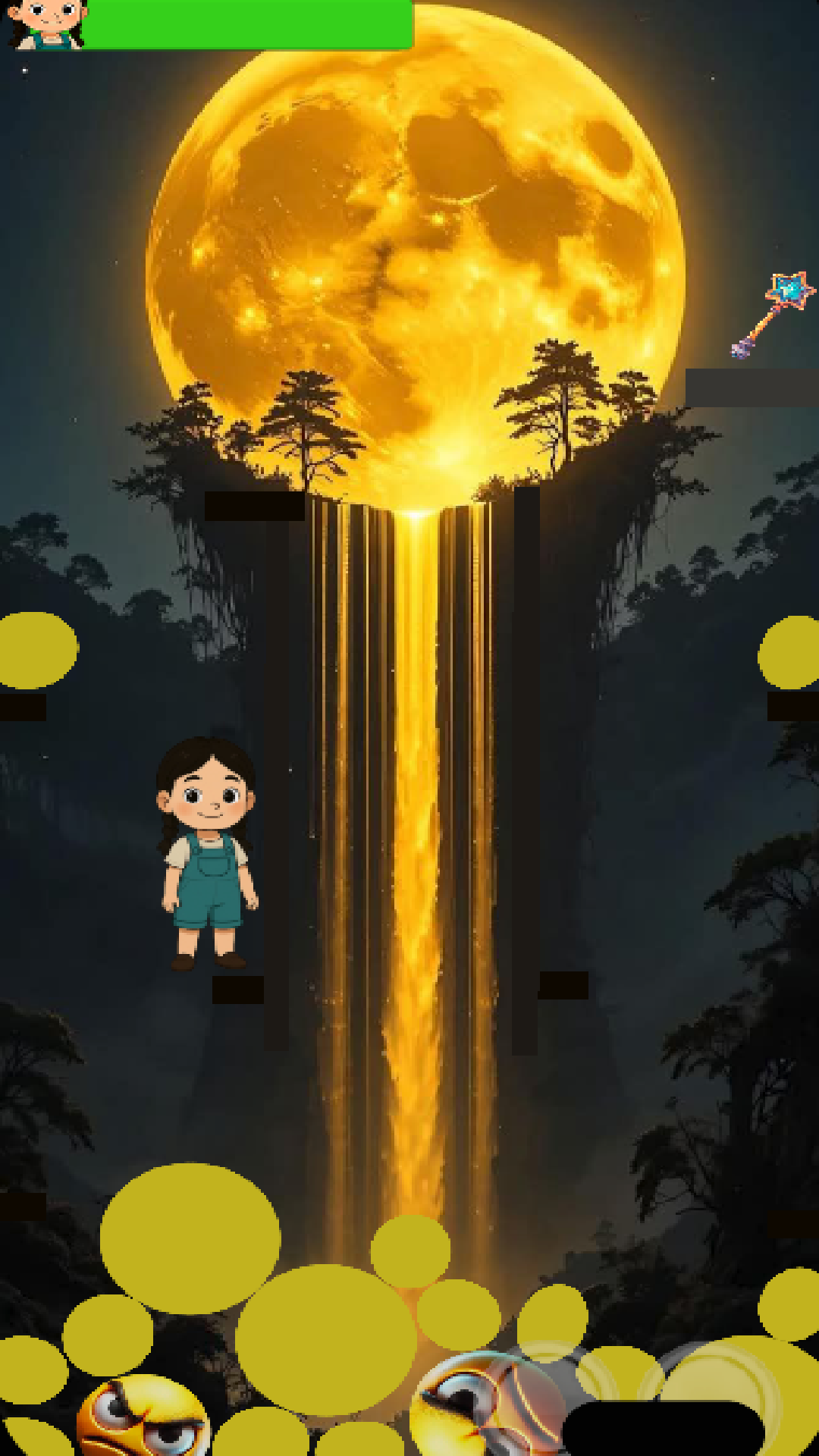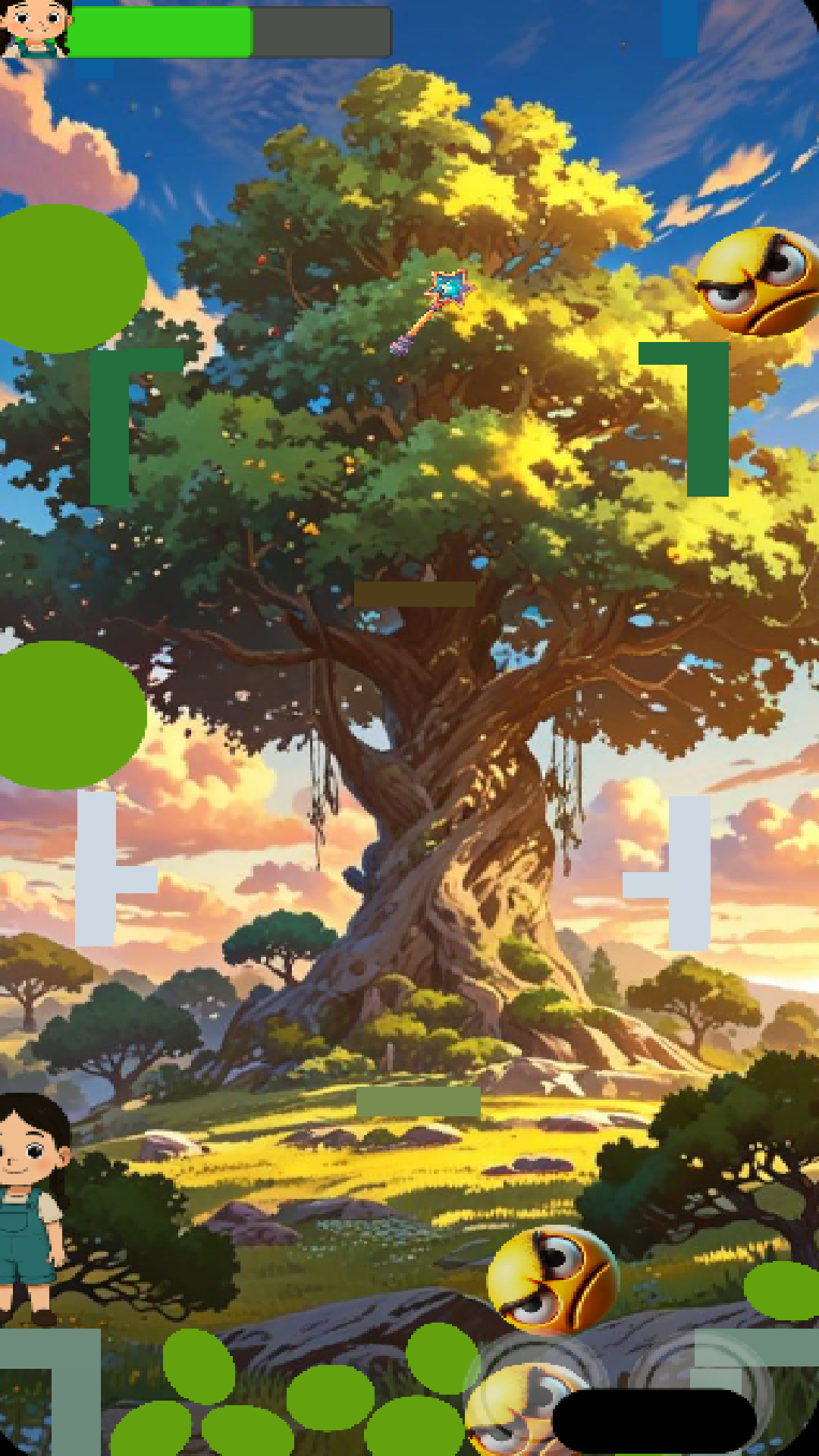 Eliminate the angry faces by freeing the world from them. Continue through the worlds until you save your entire kingdom and are crowned.